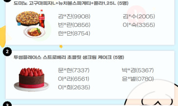 ★「대전시민 고민자랑 사후 설문 이벤트」 당첨자 안내이벤트에 참여해주신 모든 대전시민 여러분, 진심으로 감사합니다!여러분의 소중한 의견은 앞으로 더 나은 사업을 만드는 데 큰 힘이 됩니다 ♥☆ 쿠폰은 11월 28일 ~ 12월 1일 중 발송될 예정입니다.※ 당첨자는 내부회의 점수 집계 결과로 선정되었습니다.※ 응모 양식에 맞지 않거나 중복 참여의 경우 선정에서 제외되었습니다.※ 연락처 오기입 시 재발송이 불가합니다.※ 쿠폰 유효기간 만료로 인한 사용 불가는 본 센터에서 책임지지 않습니다.따뜻한 참여에 다시 한